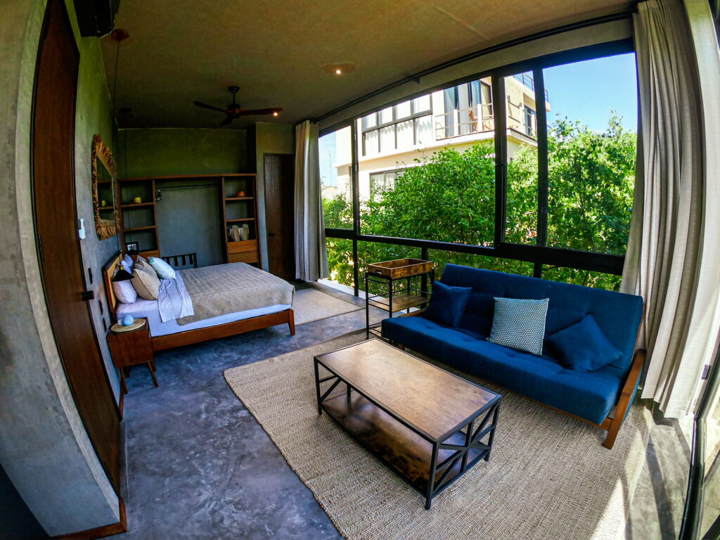 Experience the comfort of our Prestige King Suite, featuring a kitchenette, living area, and a spacious terrace with garden views — the perfect retreat to relax and connect with nature in Tulum’s beach zone.